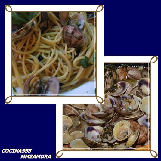 De plato principal proponemos unos espaguetis con almejas. Podemos hacer las almejas antes y mientras, tomamos el entrante cocemos las pasta.