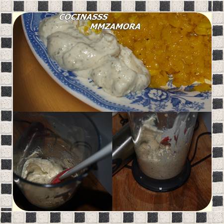 Y otra fantástica es la SALSA DE ALMENDRAS , esta receta la utilizo sobre todo para las albóndigas y los calamares rellenos. Los ingredientes son un puñado de almendras crudas, tres dientes de ajo, un trozo de pan duro y un tomate maduro. Se fríe cada ingrediente por separado. Se pone en el vaso de la batidora y se añade un poquito de sal . Se tritura todo junto y se pone en la cazuela, añadimos laurel, un poquito de vino blanco, azafrán o colorante ( opcional) y una pastilla de concentrado de carne ( esto es también opcional ). Se agrega un vaso de agua tibia y se deja cocer junto la carne o los calamares unos 25 minutos a fuego lento.
