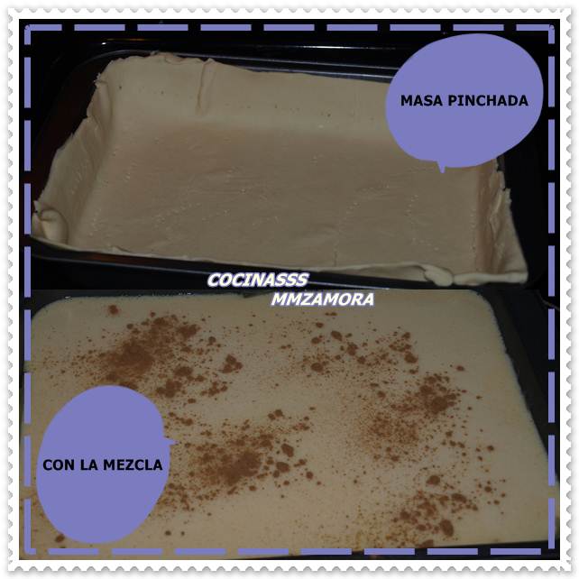 3-Se echa toda la mezcla en el molde encima del hojaldre, le espolvereé un poquito de canela ( la receta original no lleva este ingrediente ) y se mete al horno a 180 grados 40 o 45 minutos mas o menos depende del horno y esperar a que s le enfrié .