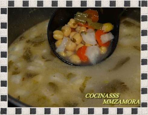 Esta receta también se puede hacer comprando los ingredientes por separado, el caldo ya preparado , las verduras cocidas o cocerlas en ese caldo preparado y añadir un trozo de pollo o pechuga, y por último unos garbanzos de bote ya cocidos.