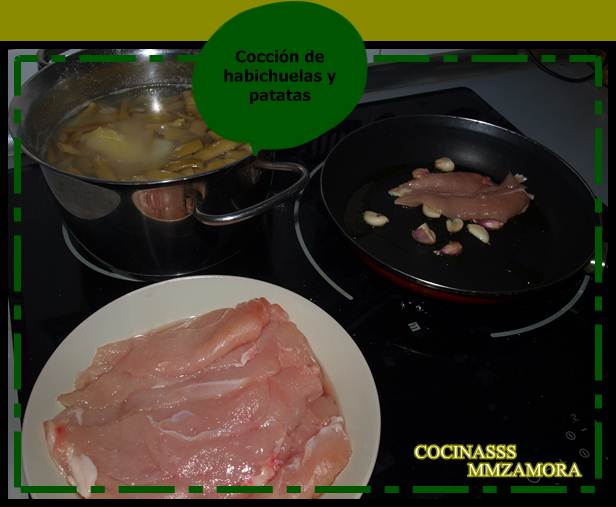 Como ingredientes principales serán las habichuelas verdes también llamadas judías verdes o vainas, y pechuga de pollo. Los ingredientes para 4 personas serían más o menos los siguientes.