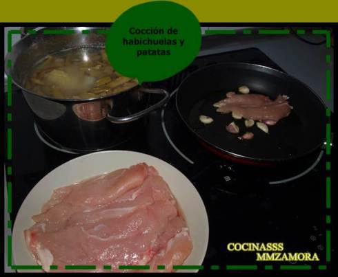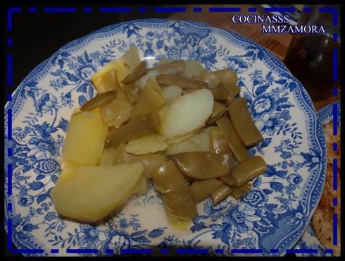 2º – Cuándo llevamos 5 ó 7 minutos de cocción, introducimos en la olla junto a las patatas las habichuelas y dejamos cocer otros 5 ó 7 minutos.