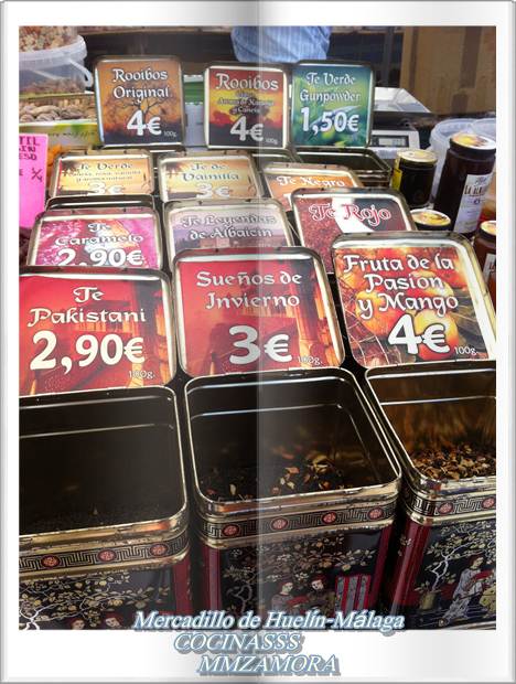 En esta ocasión he visitado el mercadillo de Huelín, es bastante amplio y tiene muchos puestos y de todo tipo. Yo normalmente voy sin buscar nada en particular y siempre salgo con 4 o 5 bolsas. Porque no sólo hay ropa y comida, si no que hay puestos con artesanías, como la madera, o alguno de antigüedades u objetos de liquidación, y por último, los que más me gustan los puestos de encurtidos, las especies y los tés.