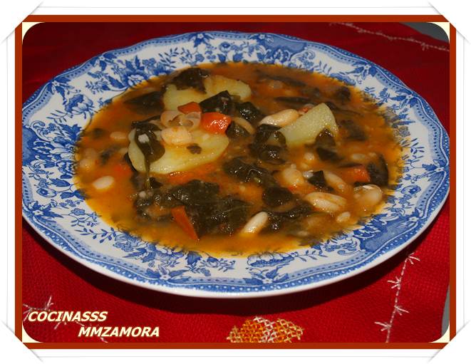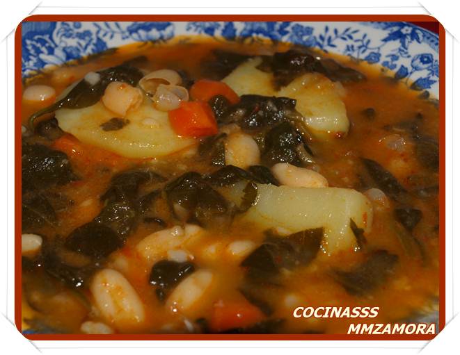 Así que he decidido fomentar estos ingredientes más en mi cocina. Hoy he realizado un potaje de alubias o habichuelas blancas con espinacas. Se puede hacer la receta sólo con verduras y las legumbres, o al final añadir un poquito de morcilla o chorizo. Así que haremos un potaje para 2 personas.