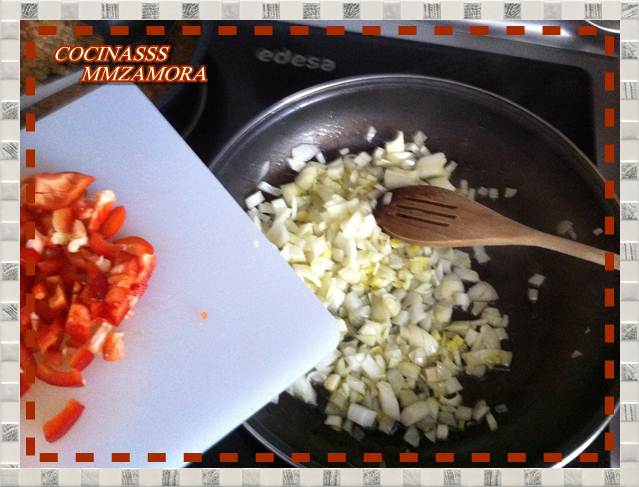 2º – Ponemos en una sarten unas cucharadas de aceite de oliva y empezamos a pochar la verdura, las primera será la cebolla porque es la que la tarda más tiempo, siempre que pongamos una verdura en la sartén pondremos también un poquito de sal. Después de una par de minutos añadimos el pimiento, más tarde la berenjena y el calabacín. Cuando llevemos como unos 10 minutos agregamos el tomate, sin piel sin pepitas y en trozos pequeñitos. Todo con la sal y un poquito de pimienta.