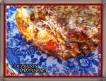 2º – Pelamos la berenjena, la ponemos sobre papel vegetal encima de una bandeja de horno, las salpimentamos y ponemos un chorrito de aceite. Se hornea la berenjena unos 10 ó 15 minutos a 175º.