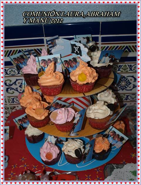 Estos son los cup cakes, que además llevaban una banderita del Málaga y con la foto de los tres niños, quedaron estupendos.