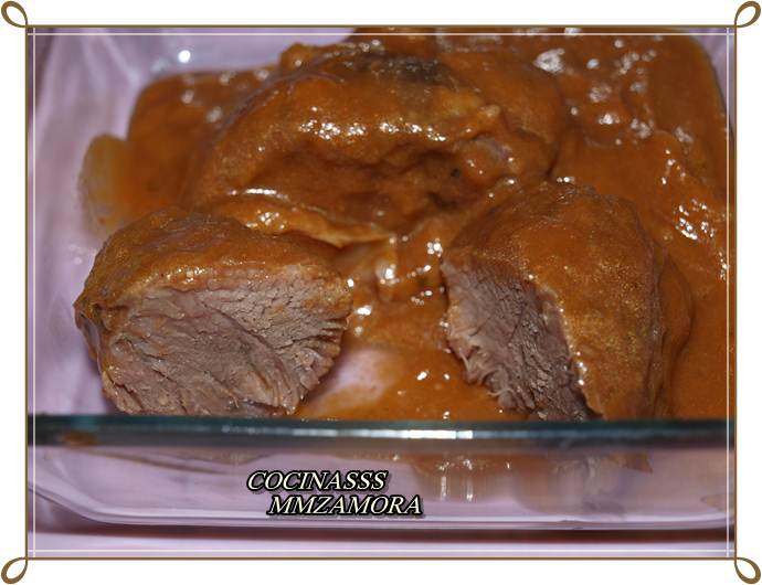 Yo suelo hacer mucho esta misma receta con ternera, y también con cerdo, normalmente solomillo, y siempre queda muy bien de sabor, con una buena salsa. Queda una carne sabrosa y melosa, porque la cocción normalmente la hago en la olla exprés. Me gusta la cocina sencilla y rápida, y la olla exprés deja la carne muy bien hecha , aunque es verdad que hay cogerle el punto porque los tiempos hay que saber medirlos, puede ocurrir que se nos queme la comida,,, que también me ha pasadoooo!!!!!!!!!!.