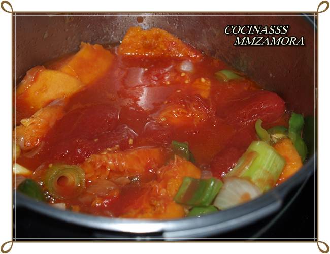 2- En la olla exprés, ponemos todas las verduras cortadas , medio litro de agua, medio litro de vino tinto a ser posible un vino medio bueno, o sea, nada te tetrabrik, eso lo dejamos para el tinto del verano o la sangría.