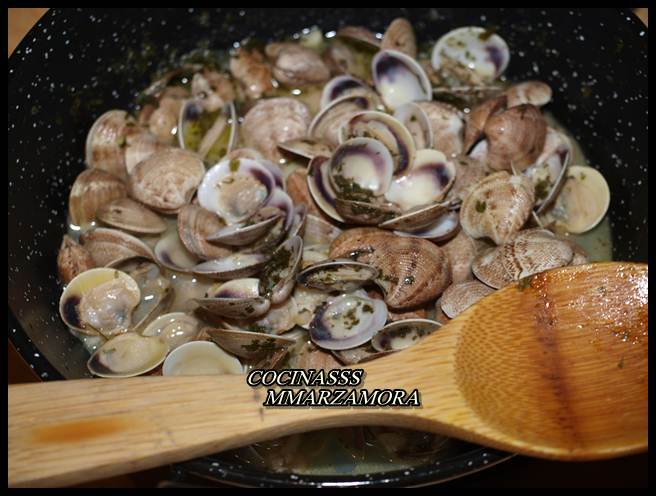 3-Cuándo se abran las almejas, se añade el perejil fresco muy picadito. Se aparta del fuego.