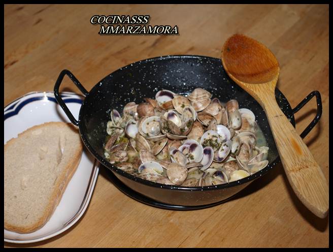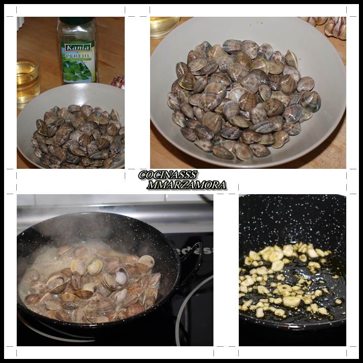 1-Las almejas deben estar en agua con sal una hora por lo menos (yo las tuve dos) para que se despojen de toda la arena, en este caso no tenían nada de arena.