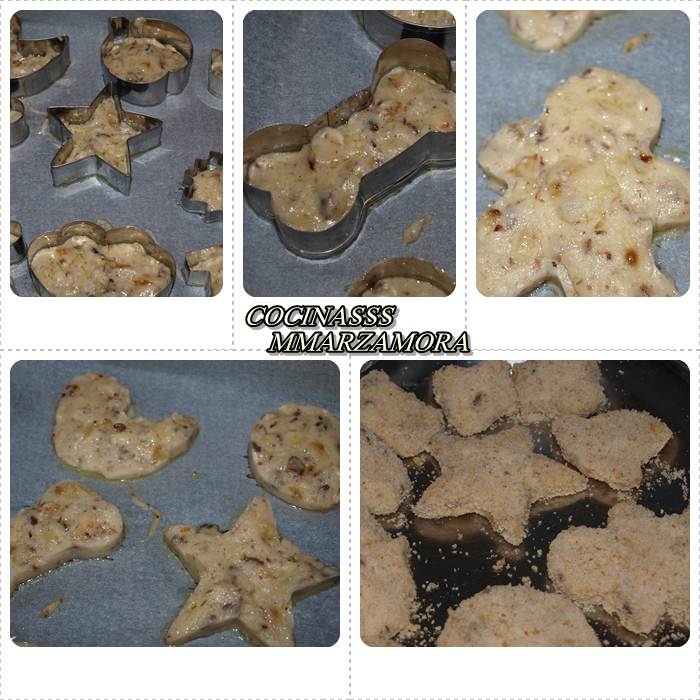 En esta ocasión me he entretenido bastante para hacerle croquetas a mi hijo, y he utilizado moldes de galletas. He cogido los moldes mas grandes que tenia y puse la masa, los dejé reposar un par de horas. A mi hijo le encantaron , jajjaja.