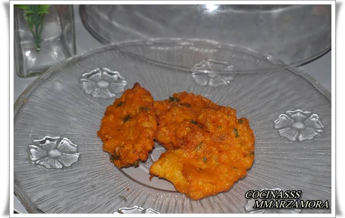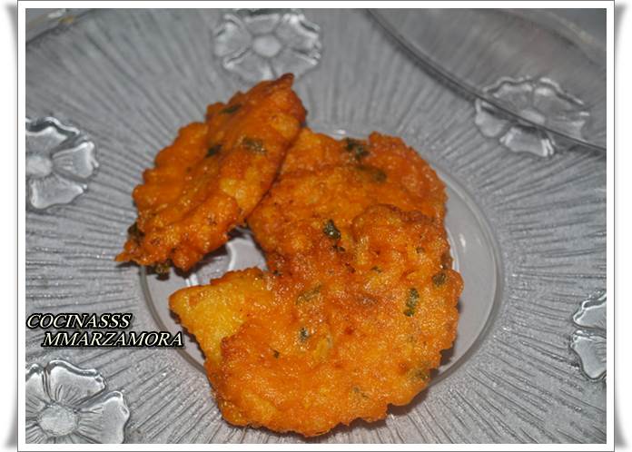 4º- En una sartén con abundante aceite a fuego medio-alto, con un par de cucharas( se cubre con masa una de las cucharas y con la otra se empuja en el aceite). Se deja freír hasta que se doran. Sacar a una fuente con papel absorbente para escurrir el aceite, y servir.