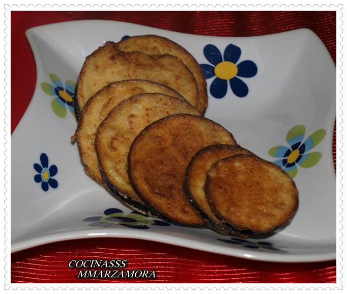 4- En un cazuela o sartén poner a calentar el aceite de oliva con una temperatura media-alta, y freír las berenjenas. Dejar reposar en papel absorbente y servir.