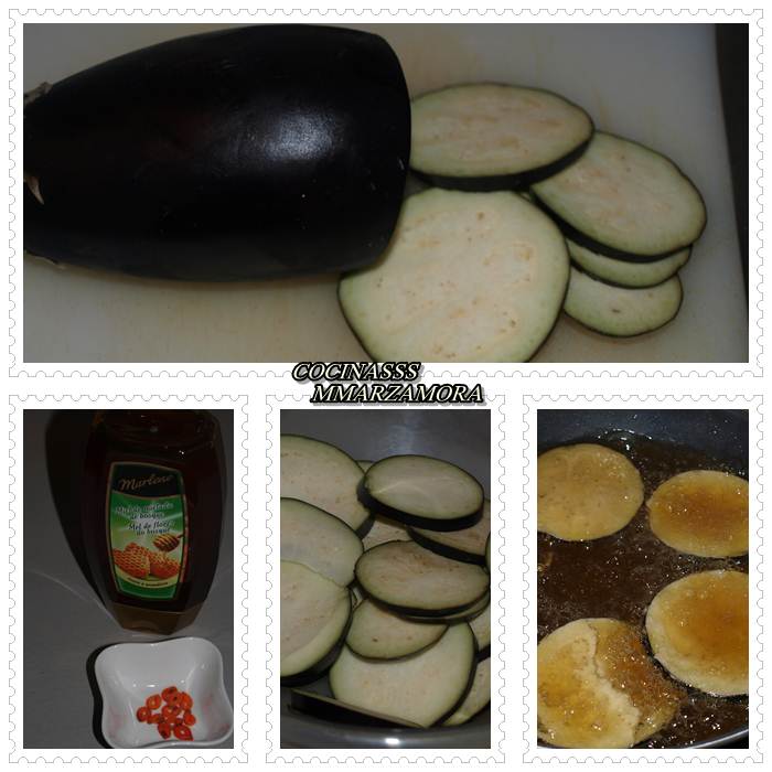 Hoy vamos a preparar una hortaliza, la berenjena. A mí, particularmente, me gusta mucho, la utilizo mucho con pisto o en lasaña, pero para esta ocasión una receta estupenda, berenjenas con miel. Como veis es un plato muy sencillo, la única variación es el rebozado, que puede ser con huevo, y la miel, que puede ser de flores, la más convencional, o la que yo aconsejo, que es un buena miel de caña.
