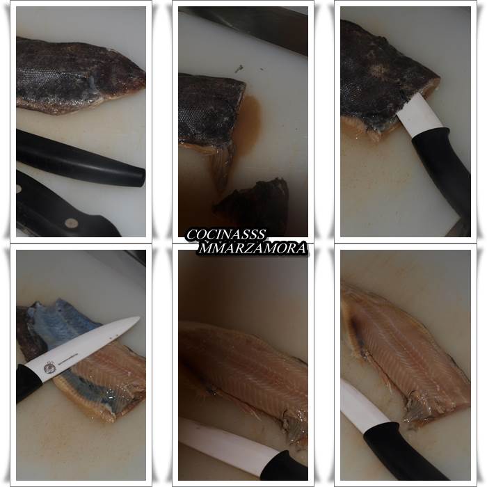 Es un pescado muy fácil de limpiar, le quito la cabeza, la piel y por último la tripa. Toda la espina esta en el borde del pescado y en medio con una raspa grande muy fácil de quitar.