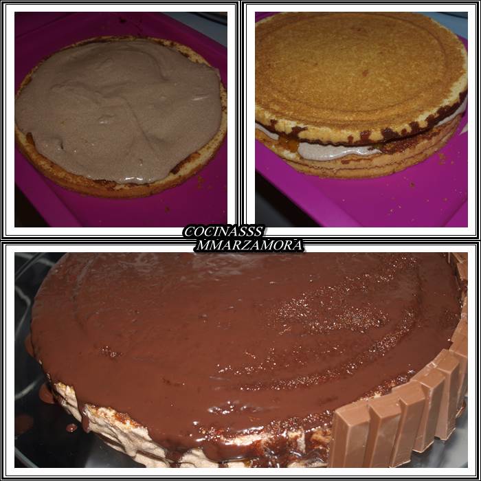 Estuve mirando varias recetas, y he unido y tuneado varias, aunque la idea principal la saque del blog http://www.cocinaconmarta.com/2013/05/tarta-kit-kat.html#.VKJur_8CBkA, aquí se utilizaba el bizcocho ya comprado.