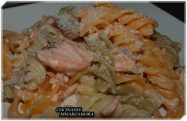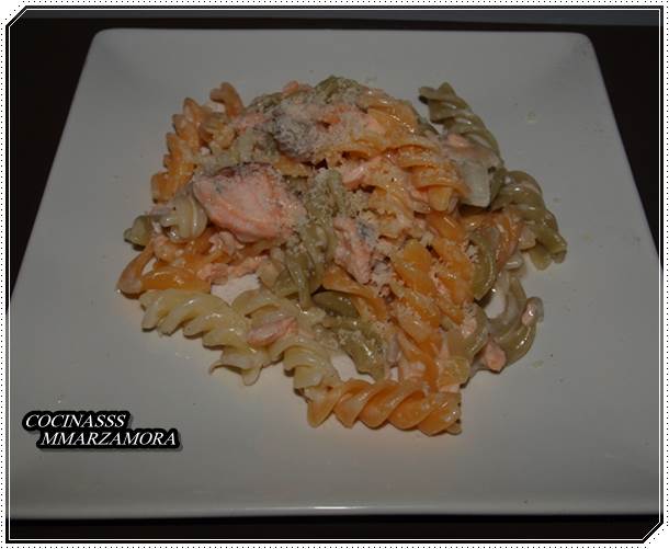 Para hoy un plato sencillo y rico. Se conjuga en un plato, pasta con pescado. Me encanta el salmón, ya lo he comentado en otras recetas, sobre todo me gusta a la plancha o marinado. Hoy cocinado con pasta.